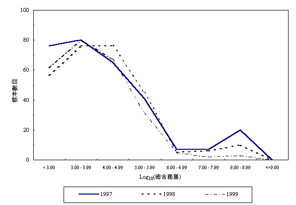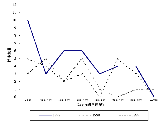 三 文 治 的 细 菌 繁 殖 总 数 ( 一 九 九 七 至 九 九 年 )