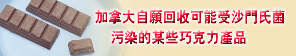 加拿大自愿回收可能受沙门氏菌污染的某些巧克力产品