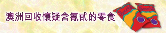| 给消费者的建议 | 澳洲当局指出,食用有关零食引致不适的机会很低,但是作为预防措施,有关当局呼籲消费者,尤其是儿童,不要进食有关产品。 |
