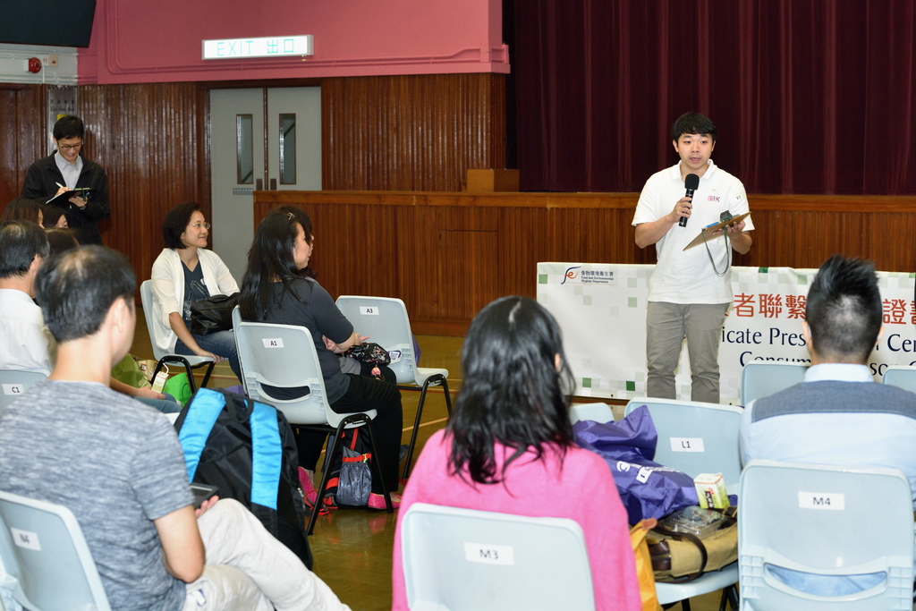 會員領取茶點後,並就消費者聯繫小組推廣食物安全的方法進行討論。