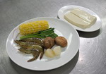 鮮蝦、急凍帶子、豆腐、鮮冬菇、新鮮粟米、菜心