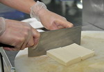 - 製作豆腐時一定要盡快處理。不然,豆腐會變得乾身及無水分,那麼到時候會較難排至骨牌形。另外,在蒸豆腐時,如有淡黃色的豆腐水滲出,就可以拿出來備用,當表面有洞時,就已經過熟了!