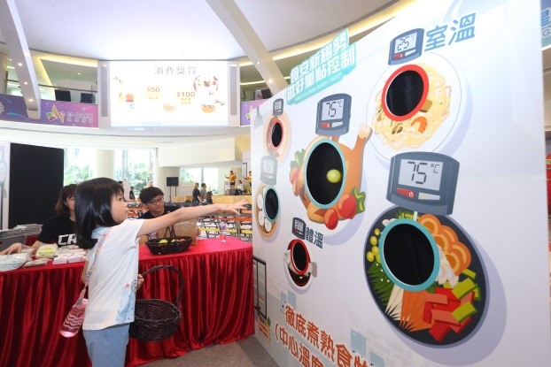 當天,中心在現場設有展板及互動遊戲攤位,向參加者介紹「食物安全重點控制」方法,包括認識有潛在危害的食物和注意食物的安全溫度。
