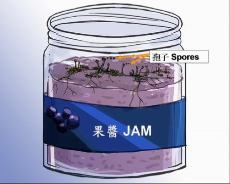 圖:菌絲可侵入食物深層,單靠去除食物表面上肉眼可見的霉菌,不足以保證食物安全。