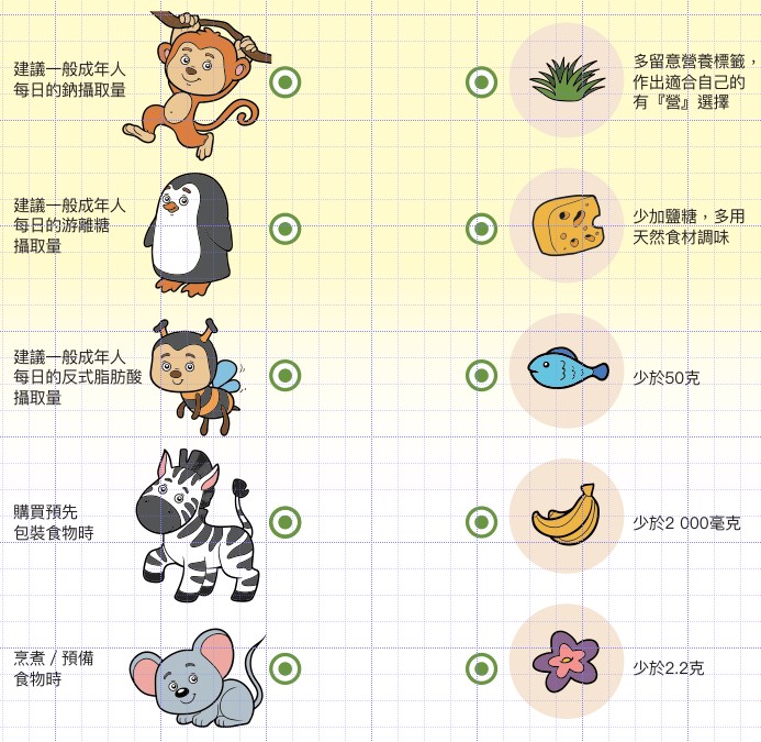 烹煮/預備食物時→少加鹽糖,多用天然食材調味
