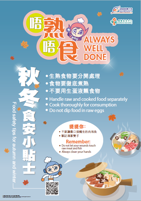 提起食物安全,時值秋冬,大家可能會想起火鍋、盆菜、大閘蟹等美食,但我們享用這些時令食品,必須注意安全。事實上,每年秋冬正是諾如病毒引發腸胃炎的高峰期。市民應遵從下列“食物安全五要點”,以減低食源性疾病的風險: