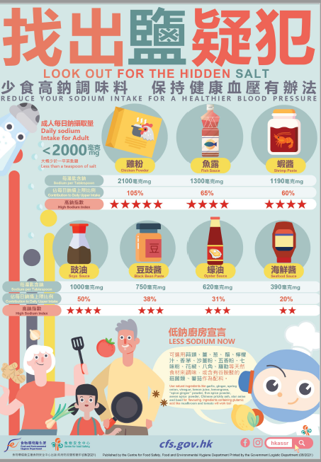 食安中心一直致力向市民推廣健康飲食。中心在2021年8月以少糖少鹽為主題,製作了全新系列的宣傳單張,有助大眾了解更多減鹽減糖資訊。