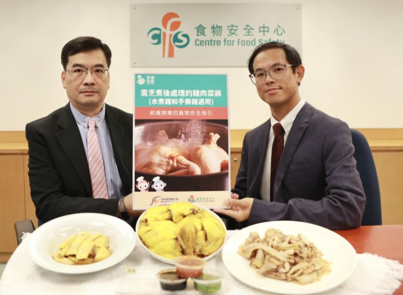 雞肉是很多本地非熱食即食食品的常見配料,而近年有相當多店鋪售賣外賣手撕雞和切雞。由於配製非熱食雞肉食品的過程有未完全煮熟的風險並涉及人手配製程序,因而或會引致較高的微生物風險。此外,這些菜式在奉客前通常需經冷卻,如貯存期間的溫度控制不當,便可能會令致病菌滋長。有見及此,食安中心從不同的外賣店或攤檔和食肆收集了100個非熱食雞肉食品樣本進行研究,結果顯示全部樣本在致病菌(即沙門氏菌屬、李斯特菌和金黃葡萄球菌)方面,均符合微生物含量的食物安全準則,質素整體令人滿意。全部樣本在致病菌方面,均符合微生物含量的食物安全準則。雖然這次研究沒有發現不滿意的樣本,提醒食物業界,應時刻遵守「良好衞生規範」,以防食物受污染。食物業商戶亦有責任為員工提供持續和足夠的食物安全和衞生培訓。
