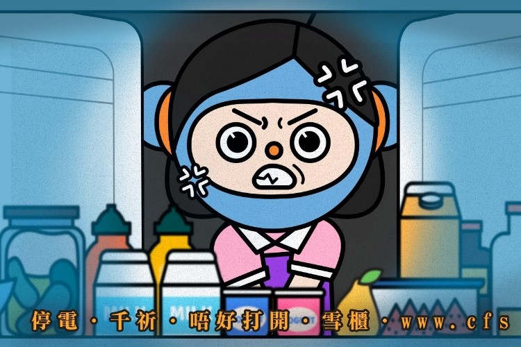 停電期間,記得要保持雪櫃門關閉,咁樣冷凍格裏面嘅食物就可以保存2至4個鐘、全滿冰格內嘅食物就可以保存48個鐘,而半滿嘅冰格就24個鐘。