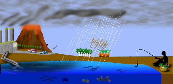 插圖 : 工業排污、汽車廢氣、火山活動、天然土壤的侵蝕和農用化學品都是金屬污染的源頭,這些污染物繼而可污染食用農作物、魚和貝類。