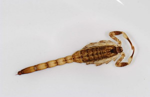 插圖: Lychas mucronatus 蠍子,此品種通常長約 4 厘米。 ( 照片來源:食環署 防治蟲鼠事務諮詢組 )