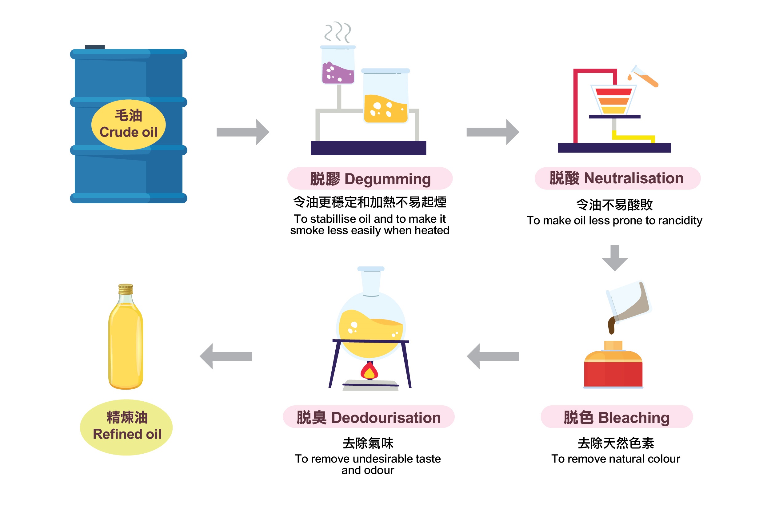 圖2:食用油脂的精煉過程