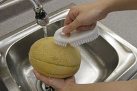 插圖: 在流動的清水下刷洗皺皮瓜