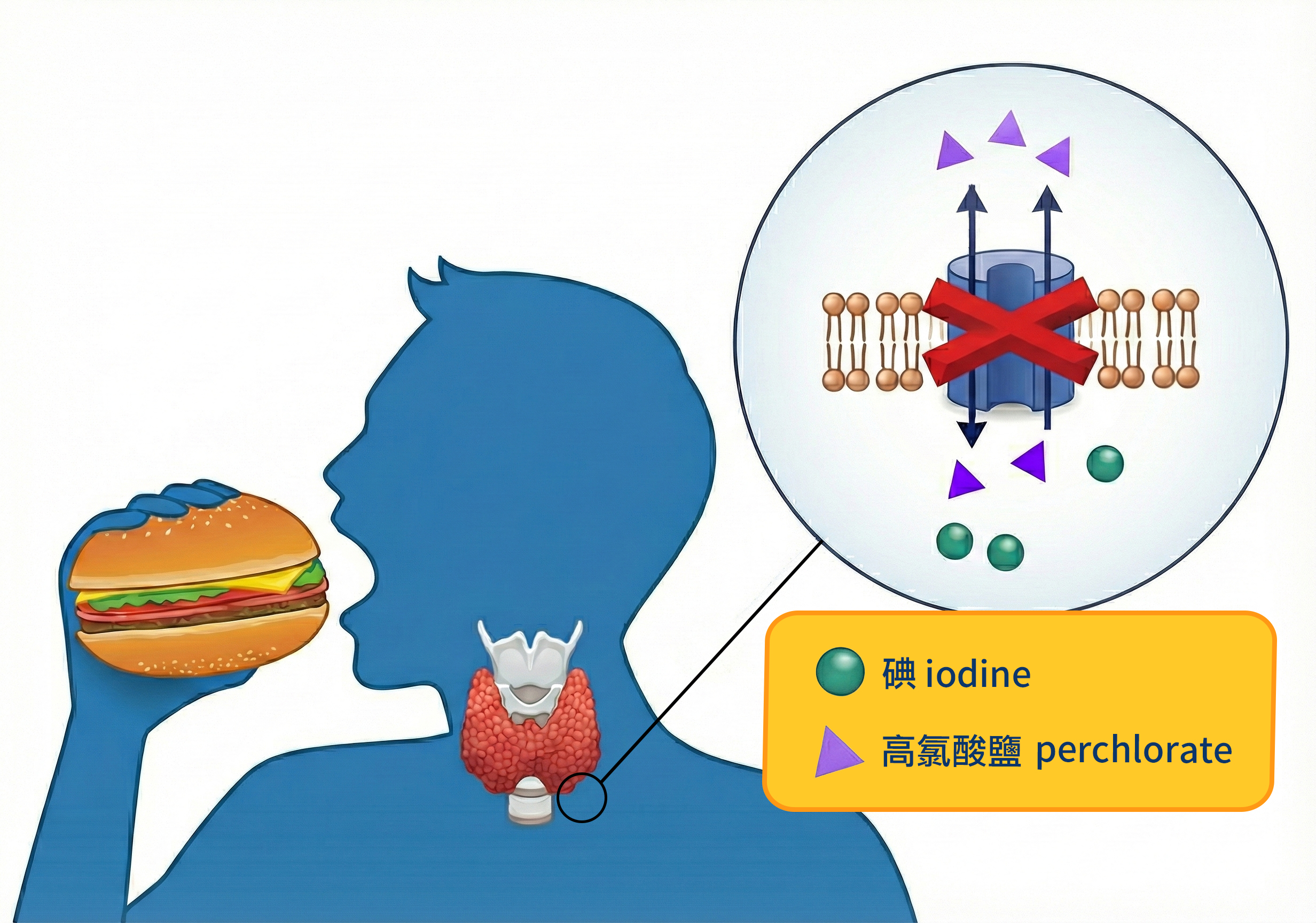 圖2: 高氯酸鹽干擾典質吸收的簡化示意圖