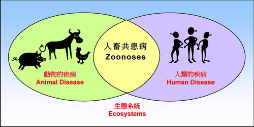 人畜共患病是指脊椎動物與人類之間自然傳播的疾病和感染疾病。在所有傳染病中,超過60%的傳染病和75%的新興傳染病是人畜共患的。從圖一可見,人畜共患病是人類和動物疾病之間交疊的部分。動物及其生態系統與人類的食物鏈息息相關,在同一個生態系統中,微生物可在人類和動物之間互傳。我們應致力預防動物的疾病傳播給人類。