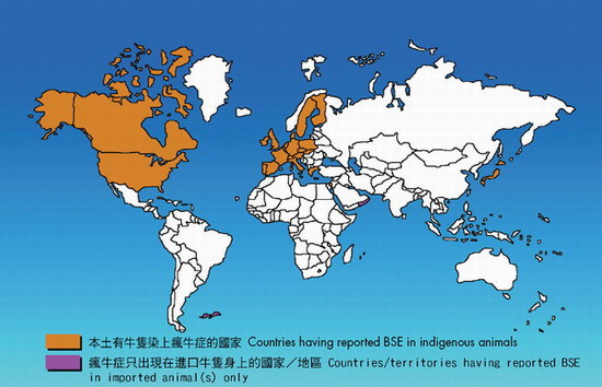 圖1:自一九八九年出現瘋牛症確認個案的國家地理分布