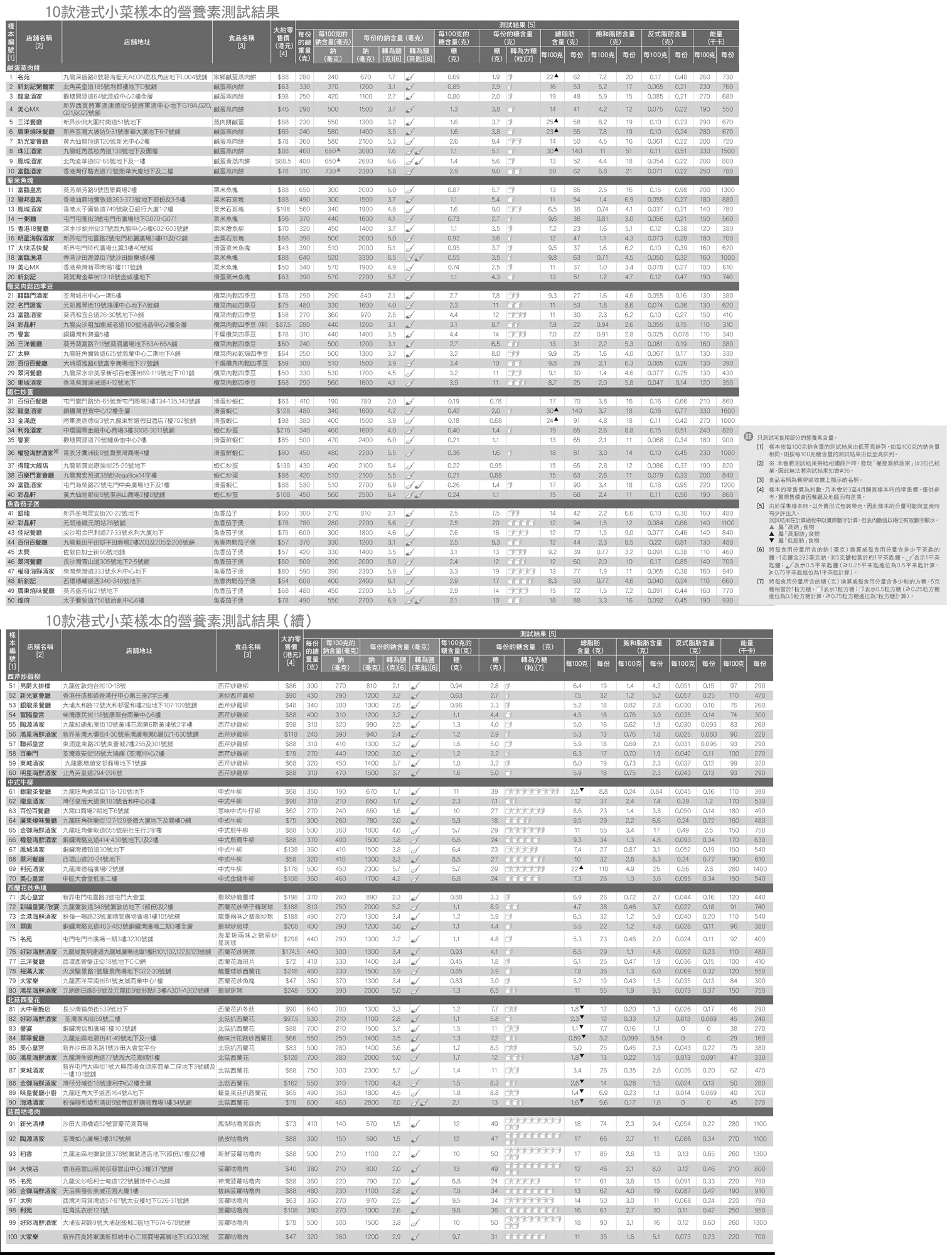 本地港式小菜的營養含量 - 食物安全中心及消費者委員會聯合測試結果