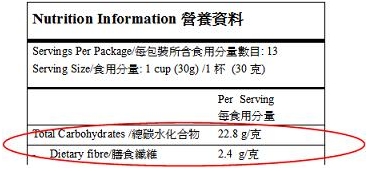 問:為何有些食品的營養標籤是標示「碳水化合物」或「可獲得的碳水化合物」,而有些就標示「總碳水化合物」?