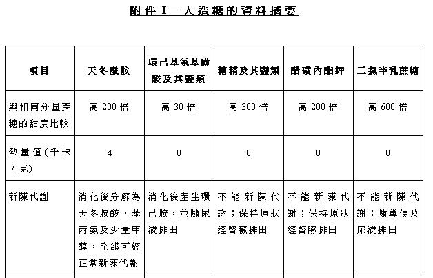 附件I 人造糖的資料摘要