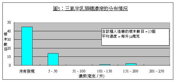 20. 這項研究樣本中每種人造糖的檢測量為每升4 毫克。人造糖屬食物添加劑,除刻意加入食物外,不會在食物中存在。要達到甜味的效果,其分量必須超出檢測量( 即每升4 毫克) 。因此,人造糖分量少於檢測量的樣本會當作零,以方便計算。