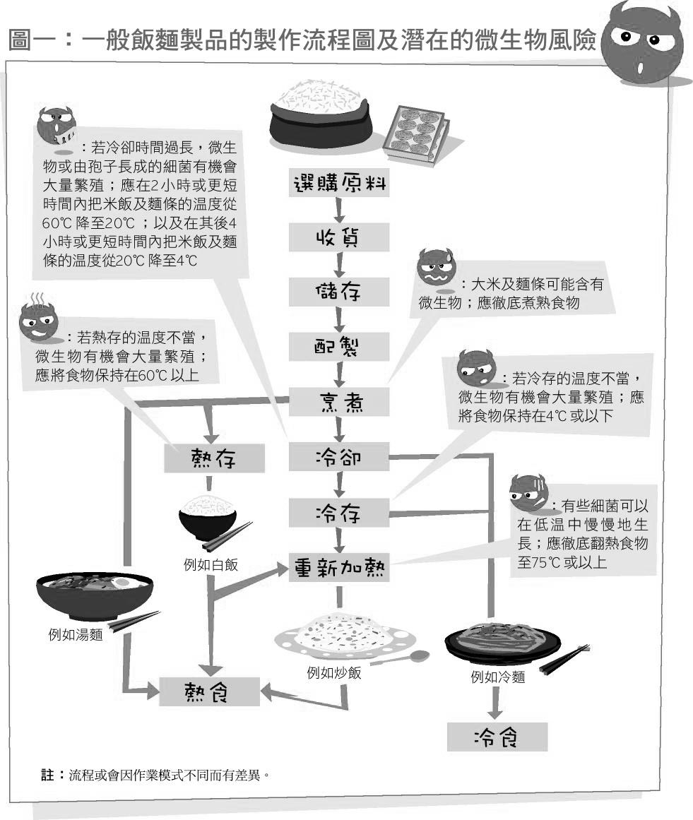 市面上的食肆提供不同種類的飯麵製品。一般飯麵製品的製作流程見圖一。