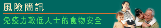- 免疫力較低人士(及其照顧者)應聽從醫生或營養師就針對免疫力較低人士的健康狀況提出的食物安全建議。