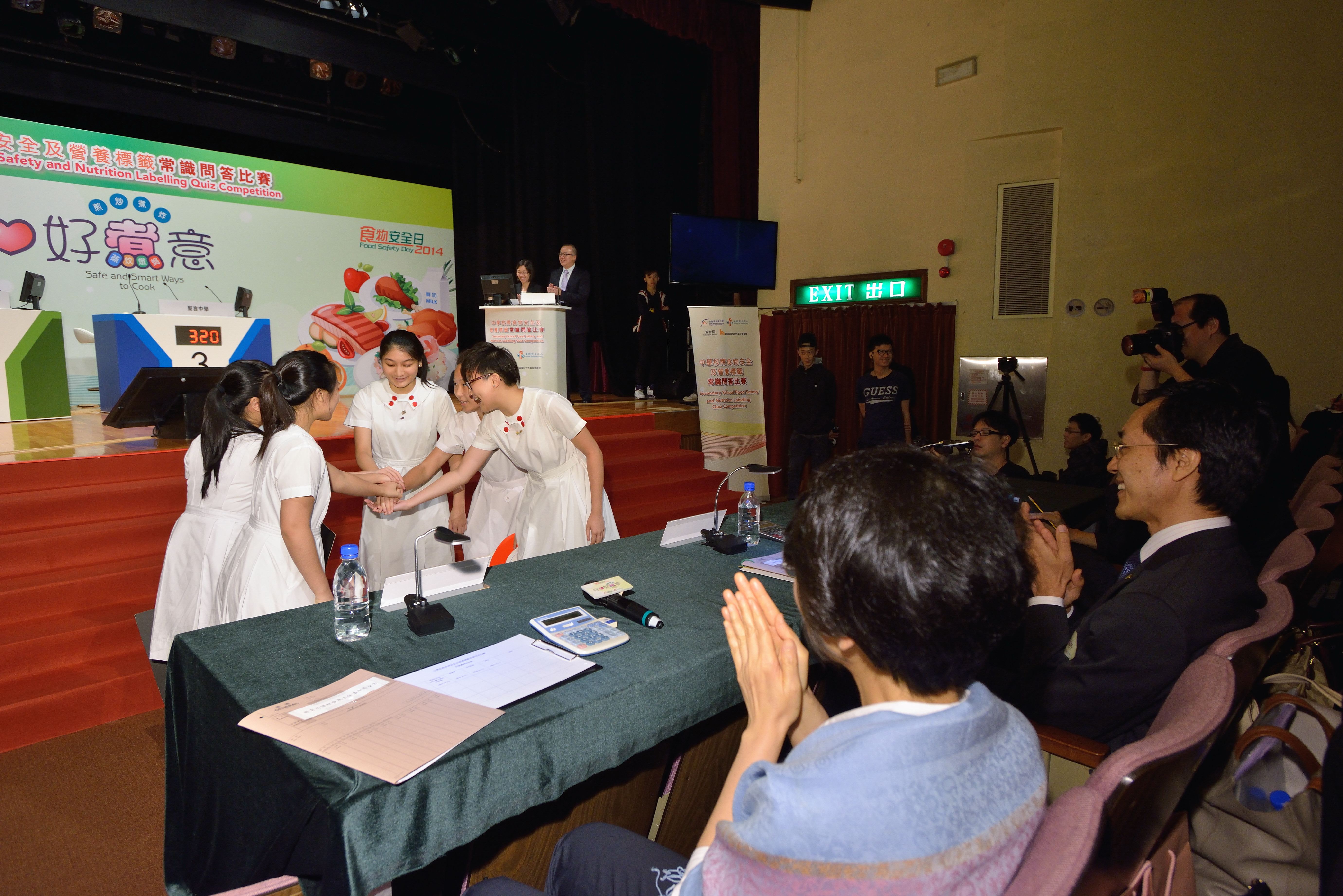 食物安全中心於二零一四年七月四日(星期五)假理工大學蔣震劇院舉行「中學校際食物安全及營養標籤常識問答比賽」決賽及頒獎禮。活動當日,食物安全中心署理顧問醫生楊子橋醫生、食物安全專家委員會主席馬正勇教授及教育局課程發展主任潘淑薇女士擔任比賽評判。晉身決賽的三支學校隊伍經過三個回合(必答題、影片搶答題及搶答題)的激烈比賽,最終由聖言中學勝出成為冠軍,聖嘉勒女書院獲亞軍而佛教葉紀南紀念中學則獲季軍。