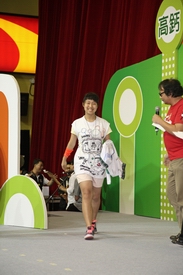 周一嶽局長與李克勤先生頒發獎項予營養標籤創意T恤設計比賽的優勝學校代表(右四至六:冠軍聖士提反女子中學,亞軍五育中學,季軍東華三院伍若瑜夫人中學)
